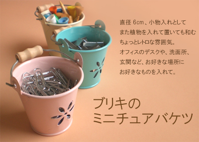 アイデア次第で色んな使い方が出来る、「ブリキのミニチュアバケツ」