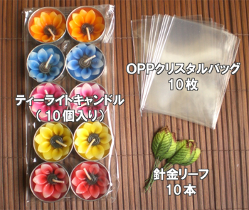 色んな種類のお花のティーライトが、おまかせ混ぜあわせで10個入ったセットです。
