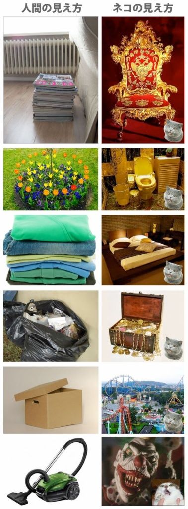 「雑誌の山」は猫には「豪華で座り心地の良さそうな椅子」に見え、