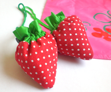 一見、かわいいイチゴですが、広げると立派なエコバッグになります。