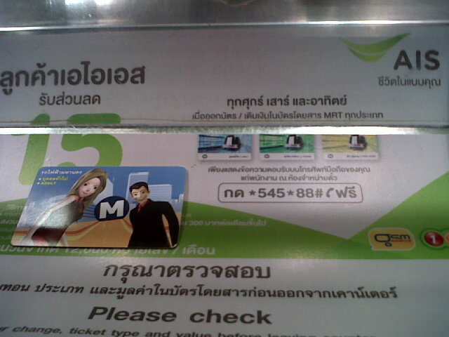現在、バンコクの地下鉄(MRT)では、AIS利用者向けのプロモーションを行っていて、地下鉄のプリペイドカードの追加など1回300バーツ以上の利用で15バーツがキャッシュバックされます。