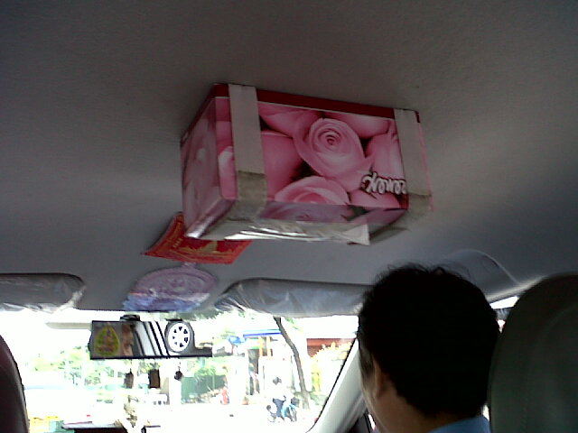 しかも天井の中央にあるので車内のどの場所からも手が届き、どの座席に座った乗客も平等にティッシュが取れる・・・う~む、これは見栄えを除いて非の打ちどころの無いアイデアグッズ。