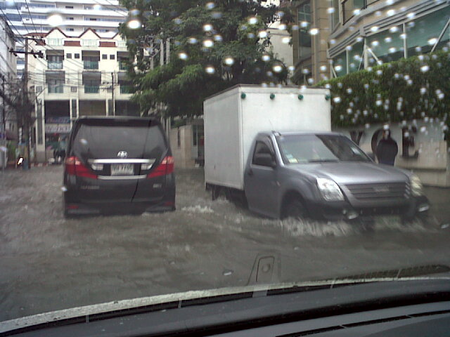 写真は先週のスクンビットの様子です。道路が川のようになっていました。