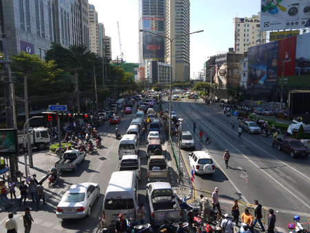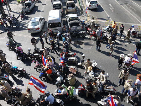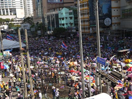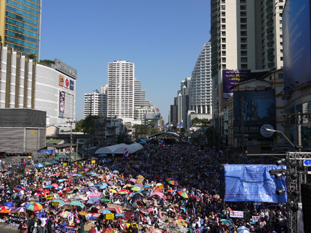 1月13日(月)の、アソーク通りでの反政府デモのようすです。